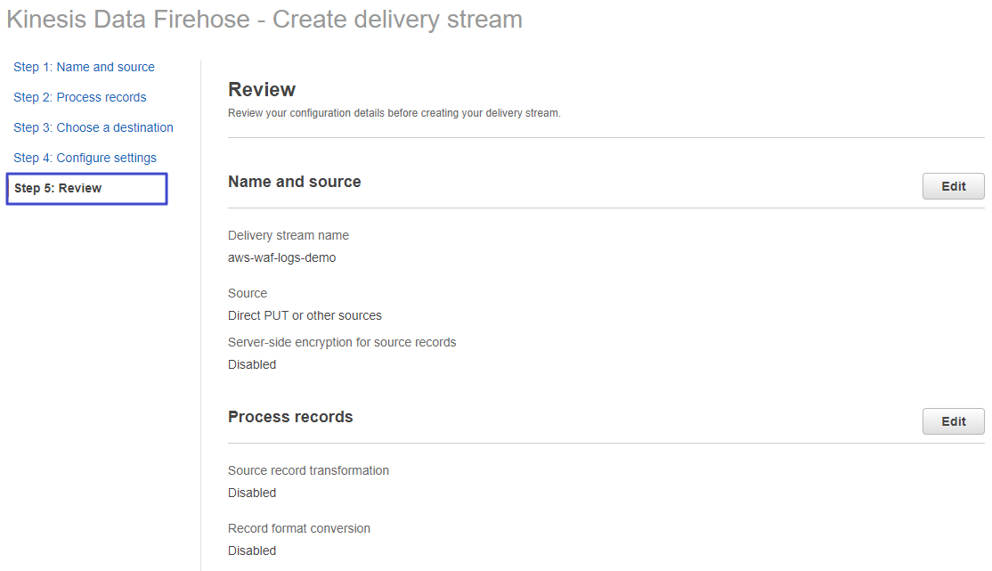 Data Firehose 생성 시 주의할 점은 반드시 WAF를 설정한 지역과 동일하게 서울 리전으로 설정 후 진행해야한다.