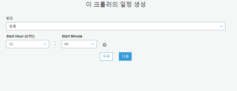 이 기능이 필요한 목적?은 일별로 S3에 적재되는 WAF Log 데이터를 가져와서 적재하는 역할이 필요함으로 매일 UTC기준 12:00로 설정하였다 (사전에 테스트가 필요한 경우 온디맨드 설정으로 추천한다)