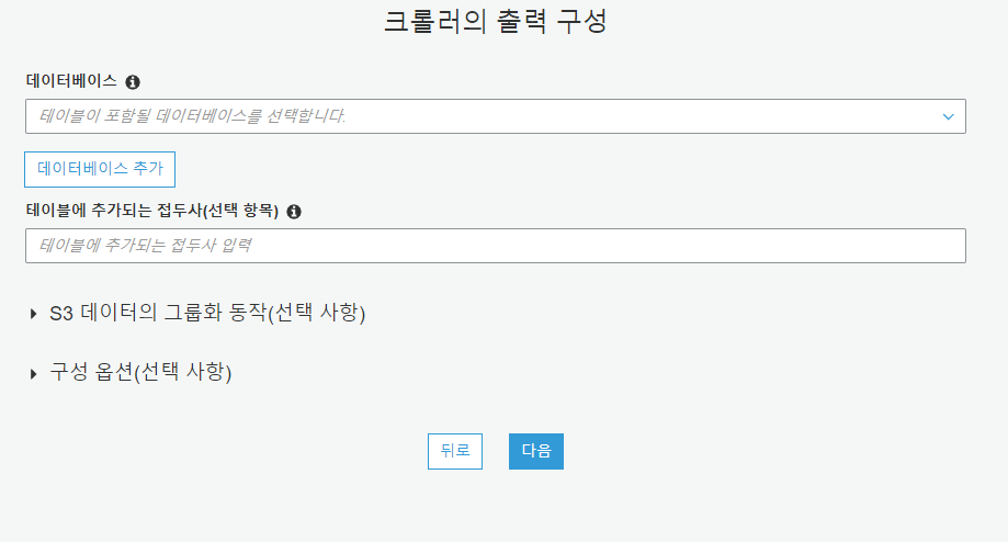 다음은 클로러에서 출력된 데이터를 적재하여야하는 데이터베이스가 필요하여 데이터 베이스 추가를 진행한 뒤 크롤러 생성은 마무리하면 Athena를 사용하기 위한 기본적인 준비는 완료될 것이다.
