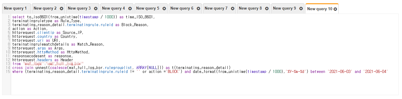 쿼리문을 공식 AWS 문서에서 참고할 수 있으며 본인이 작성한 쿼리문 예시는 아래 공유한다.
